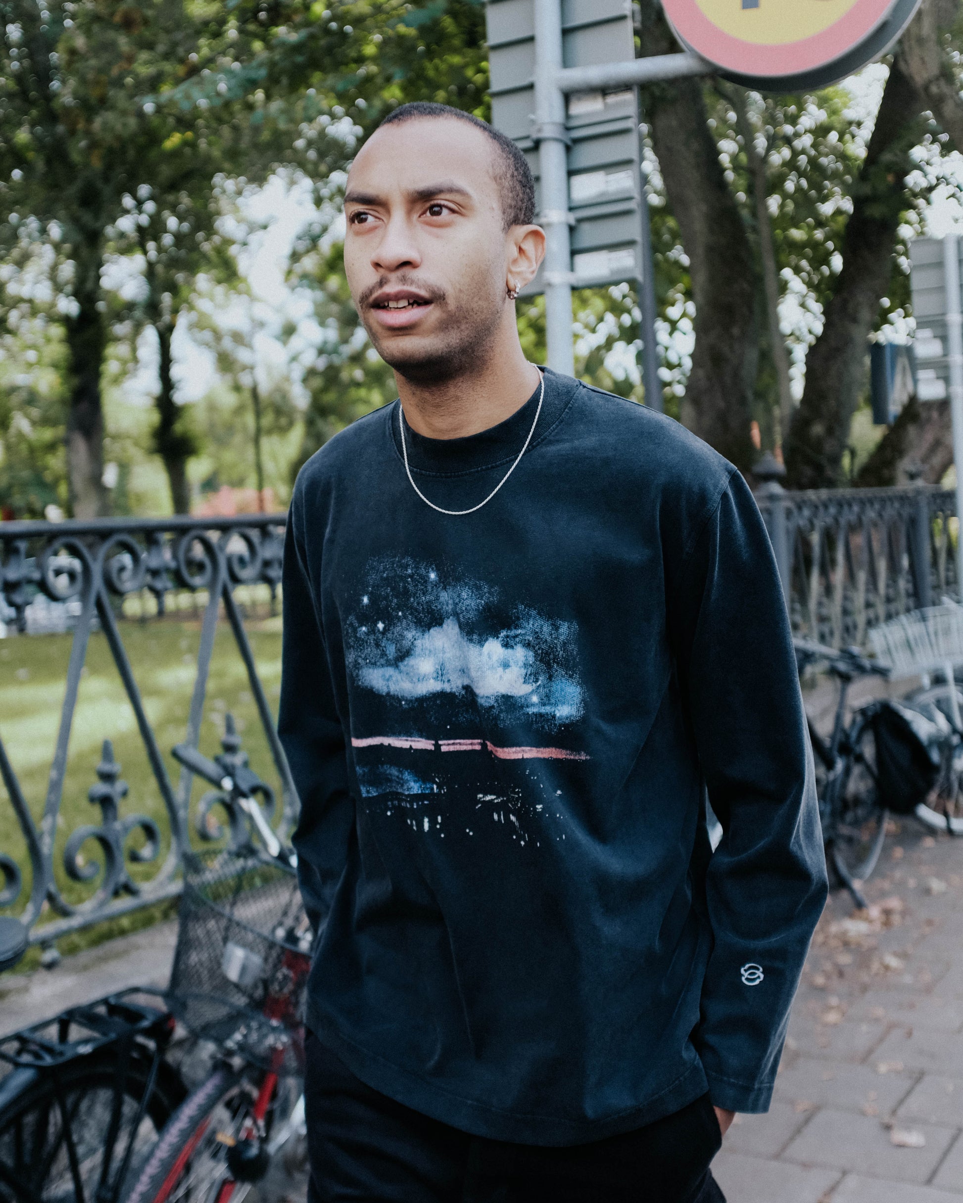 This longsleeve t-shirt features a relaxed, unisex fit with a smooth vintage wash and sprayed finish. Stockholms Skyline printed on the chest, with a authentic vintage worn out effect. Made from soft jersey cotton. The back is detailed with a screen-printed neck logo.